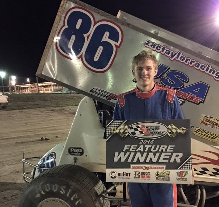 Inside Line Promotions – FORT MORGAN, Colo. (Aug. 9, 2016) – Zac Taylor overcame an early race incident at Phillips County Raceway on Friday before he used a late-race restart to storm into the lead and earn his fifth win of the season.