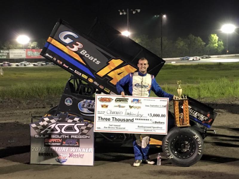 HIGHLANDS, Texas (Sept. 6, 2016) – Channin Tankersley just set his single-season record by recording his fifth ASCS Gulf South Region feature victory of the year last Saturday at Battleground Speedway.