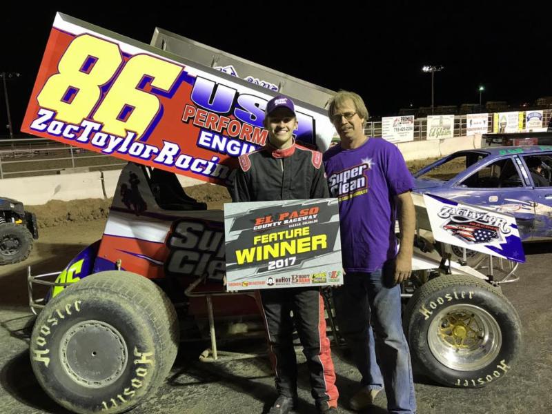 CALHAN, Colo. (May 17, 2017) – Zac Taylor recorded his first win of 2017, driving his 305ci winged sprint car to a dominating victory last Saturday at El Paso County Raceway. He also piloted Todd Henry’s midget to a third-place finish the same night.