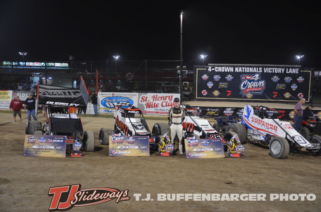 Daison Pursley poses with all of his winning entries from the 4-Crown Nationals weekend at Eldora Speedway. (T.J. Buffenbarger Photo)
