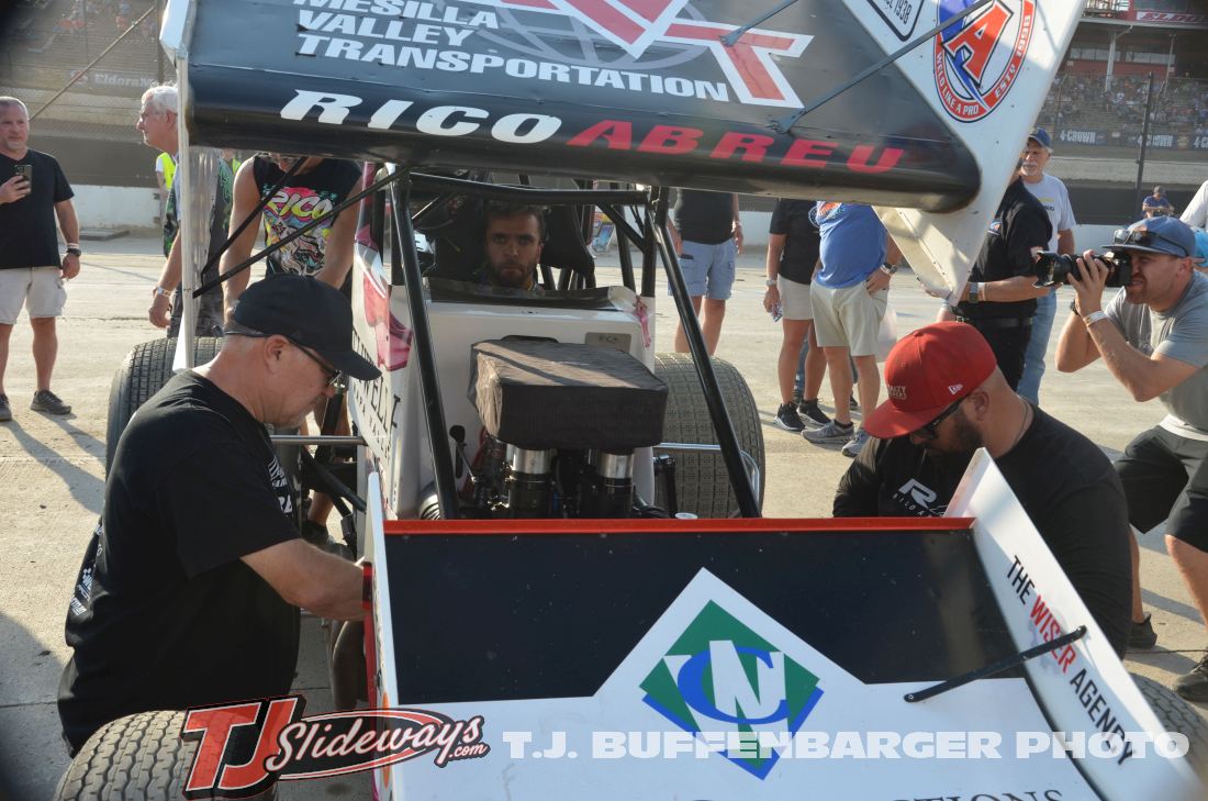 DSC_0475 Rico Abreu’s crew working on tuning during engine heat at Eldora Speedway. (T.J. Buffenbarger Photo) Rico Abreu’s crew working on tuning during engine heat at Eldora Speedway. (T.J. Buffenbarger Photo)