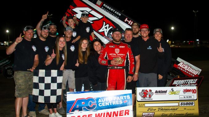 THOROLD, Ont. (October 4, 2025) – The inaugural edition of the Fall Brawl at Merrittville Speedway featured plenty of storylines for the Southern Ontario Sprints series. Dylan Westbrook emerged from a thrilling race with the $5,000 winner’s cheque, while Darren Dryden clinched his first SOS championship by just four points.
