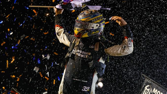 The early laps unfolded, and Carson Macedo quickly asserted himself as a contender as he moved by Gravel for second and closed on Macri. But the engine expired on the Jason Johnson Racing No. 41, ending his night. That elevated Chase Dietz into second, and the York, PA native took a couple peeks under the No. 39M but didn’t have enough. Macri pulled ahead in traffic on his way to Victory Lane.