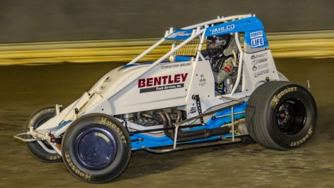 New Egypt, New Jersey (October 10, 2025)………Christian Bruno from Deptford, New Jersey has always loved the big, sweeping half-miles. In fact, he stunned everyone back in April, snookering Briggs Danner from 11th to win the Port Royal season opener. That victory immediately put the No. 17B Bentley Truck Repair machine on the radar of every USAC East Coast competitor.