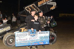 When all was said and done Joel Myers Jr. wrapped up the Abreu Vineyards Trophy Cup 31 title by just three points over Colby Copeland. Myers piloted the Hayward Motorsports No. 19 to the championship with a strong drive in both his heat race and the main event on Saturday night. Copeland’s run was also ultra impressive after visiting the work area early in the race.