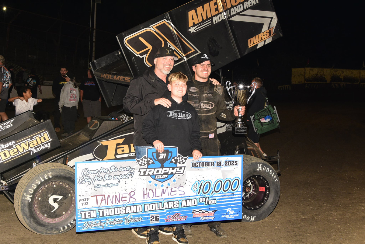 While Myers captured the title Jacksonville, Oregon’s Tanner Holmes picked up a thrilling late race win during the 50 lap Trophy Cup finale aboard the Tarlton & Son No. 21 mount.