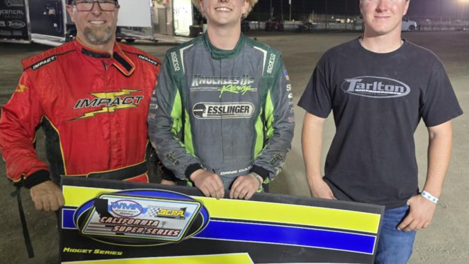 STOCKTON, CALIFORNIA (November 2, 2025) – Riverside’s Dane Culver put a cap on a spectacular season for the inaugural WMR-BCRA Super Series on Saturday night, winning the Tribute to Gary Patterson finale for the Midget championship at Stockton Dirt Track. Culver outfoxed 2025 series champion Caden Sarale of Stockton to become the sixth different winner of the season.