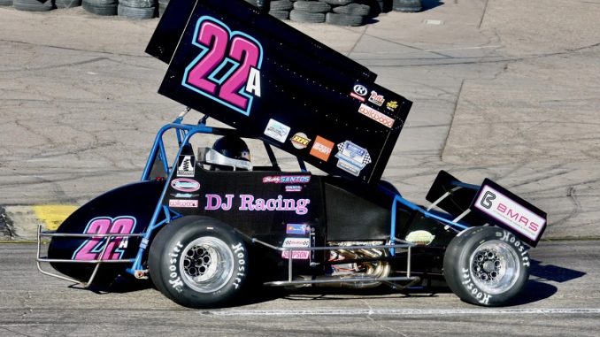 The opening session saw wild swings of pace, with JoJo Helberg of Rohnert Park initially unloading several tenths ahead before the rest of the pack grabbed hold of the speedway. Warm 80 degree temperatures presented a challenging surface for the winged machines. British Columbia, Canada’s Jeff Montgomery continued his tradition of strong opening practice day performances as well, ending the night session in fifth.