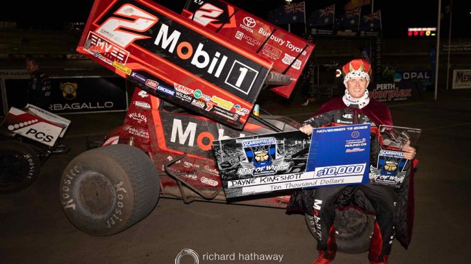 THE Dayne Kingshott and Krikke Motorsport team duo picked up one of their best wins together on Saturday night at the Perth Motorplex, when they combined in sensational style to create history by becoming the first to score a King of Wings three peat.