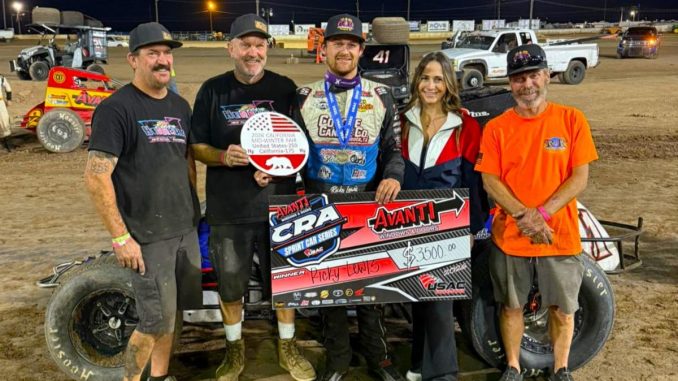 Imperial, California (March 14, 2026)………Surging off the final corner, Ricky Lewis of Camarillo, California passed both Stevie Sussex and A.J. Bender to win by 0.034 seconds and earn his fifth consecutive Avanti Windows & Doors USAC CRA Sprint Car victory on Saturday night at California’s Imperial Valley Raceway.