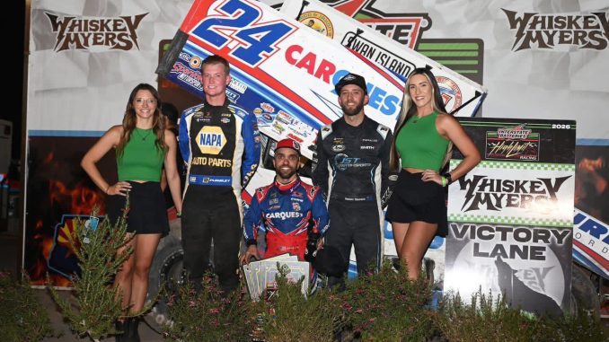 BROWNSBURG, Ind. (March 23, 2026) – St. Helena, California, native and reigning Interstate Batteries High Limit Racing Series champion Rico Abreu is officially a winner with Tony Stewart/Curb-Agajanian Racing (TSR), breaking through in his Thursday night appearance at Central Arizona Raceway in Casa Grande, Arizona. Abreu, who started third on Thursday’s A-Main grid, took command over Series rival and Nevada native Tanner Thorson on lap 14, driving away to lead the rest of the 25-lap contest.