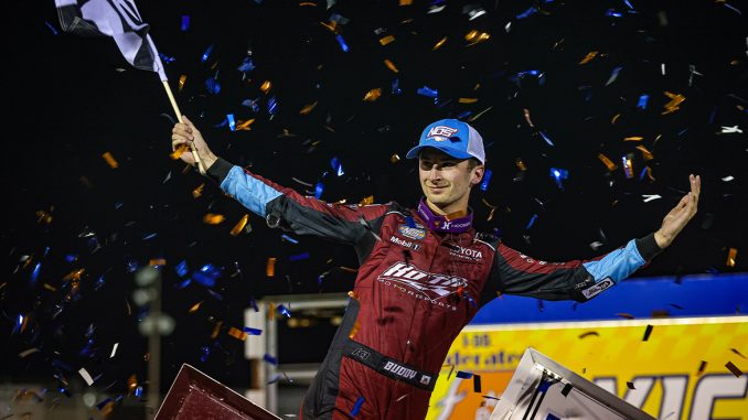 “I feel like it’s really hard to lead a whole race, especially at a place like this where you can make speed and come from the back or the middle and get to the front and win,” Kofoid said. “I told Dylan (Buswell) I feel like it wasn’t the best race I’ve ran. It’s no discredit to them or anyone, just with how the track was I didn’t feel comfortable probably most of the whole day. When it gets like that, it’s really hard to run it in hard into (Turn) 1 and have to backpedal for the curb to (Turn) 2 because you kind of broad slide. It’s hard to get your car good for that, and it’s hard as a driver to run it in hard and pedal your way to it. Dylan, Nate (Knotts), and Gage (Tyra) just continue to give me good cars.”